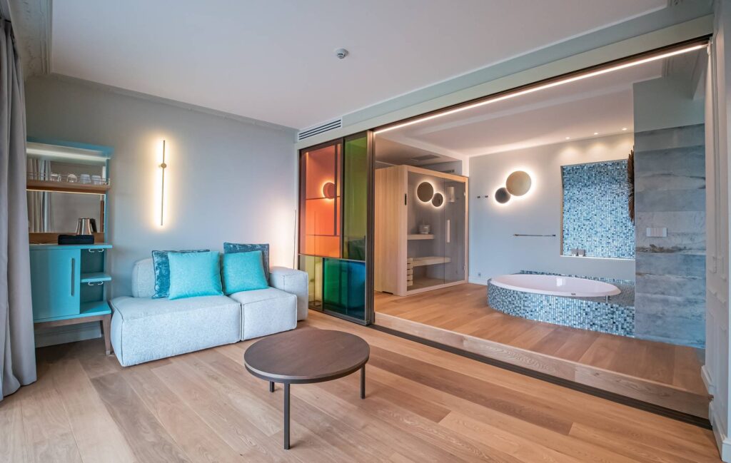 Suite esperienziale con accesso privato dall’esterno, living interno affacciato sulla bow window e zona living nel giardino privato al piano terra. L’ Experience Deluxe Suite è dotata di ogni comfort e insonorizzazione, dispone di un letto matrimoniale, di una mini piscina riscaldata situata all’esterno con vista mozzafiato sul mare, 2 sedute lounge e 26 getti […]
