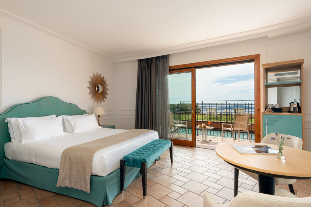 Al secondo piano con terrazza privata e vista mozzafiato sul Golfo, impreziosite da raffinati dettagli. Ampia e luminosa camera di 29 Mq al piano 2°, letto matrimoniale, vista mare totale mozzafiato, terrazza privata, arredamento classico. Bagno con doccia a vista sulla camera e sul mare, WiFi free, TV LCD, aria condizionata insonorizzata, Minibar Free, Cassaforte.